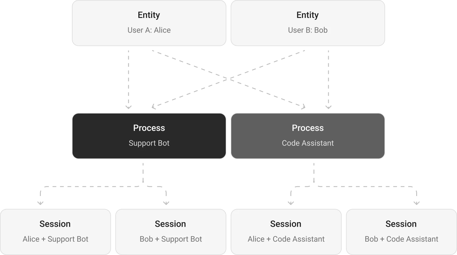 Memori provides built-in multi-user and multi-process isolation through its attribution system. Each combination of entity, process, and session creates an isolated memory space — user A never sees user B's memories, and your support bot has different context than your sales bot.
