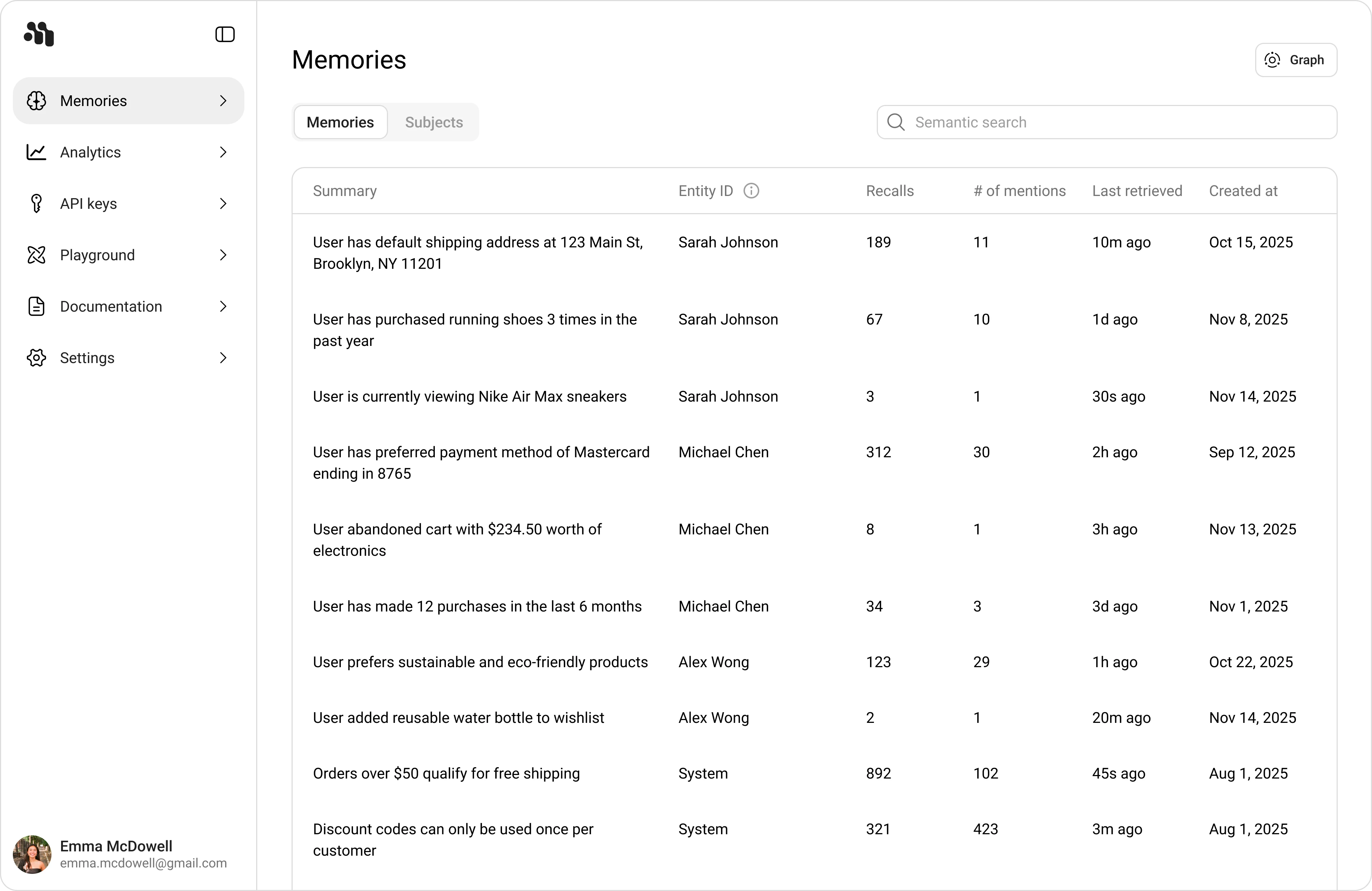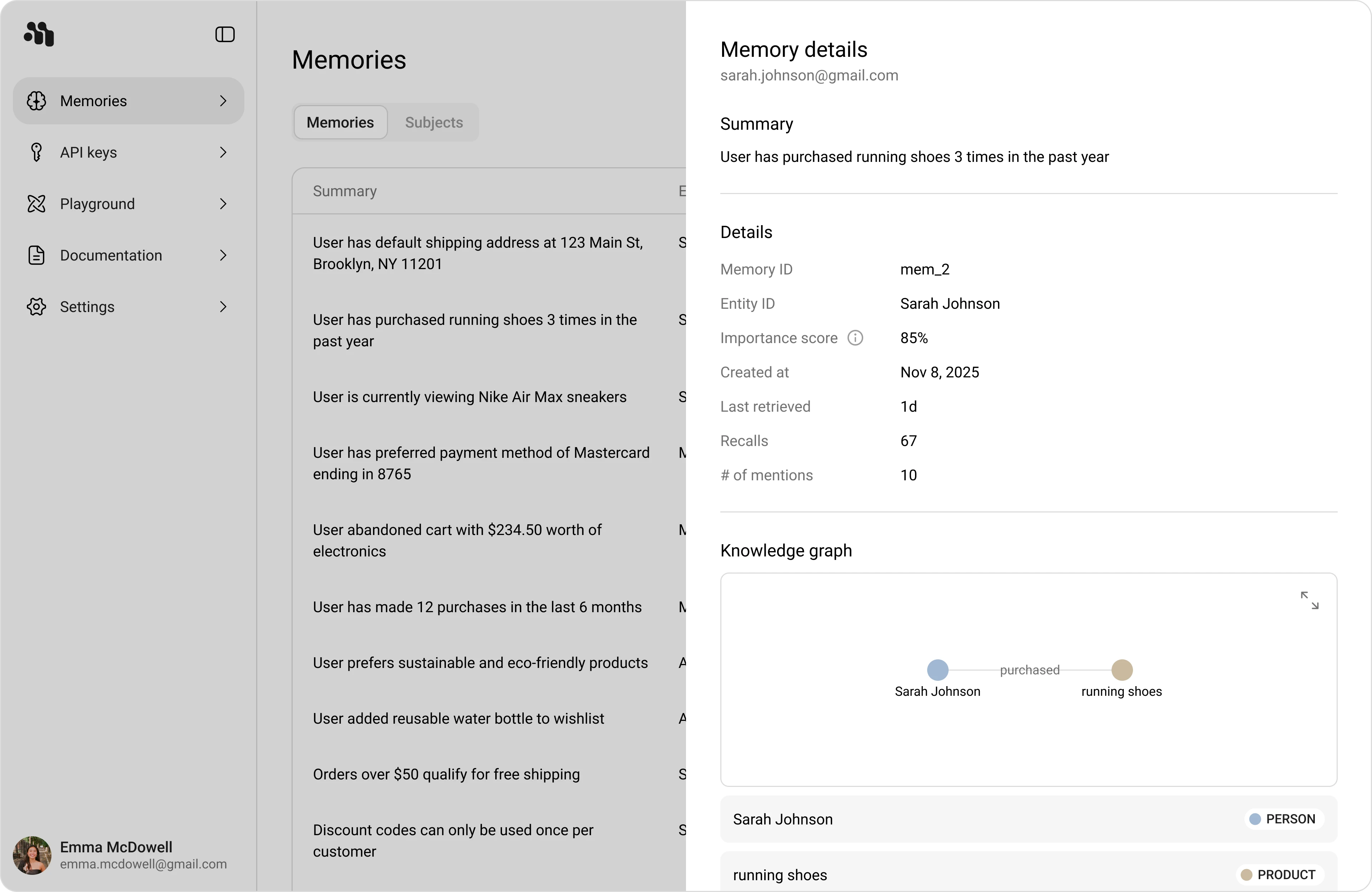 - Entity ID: The associated entity for that memory