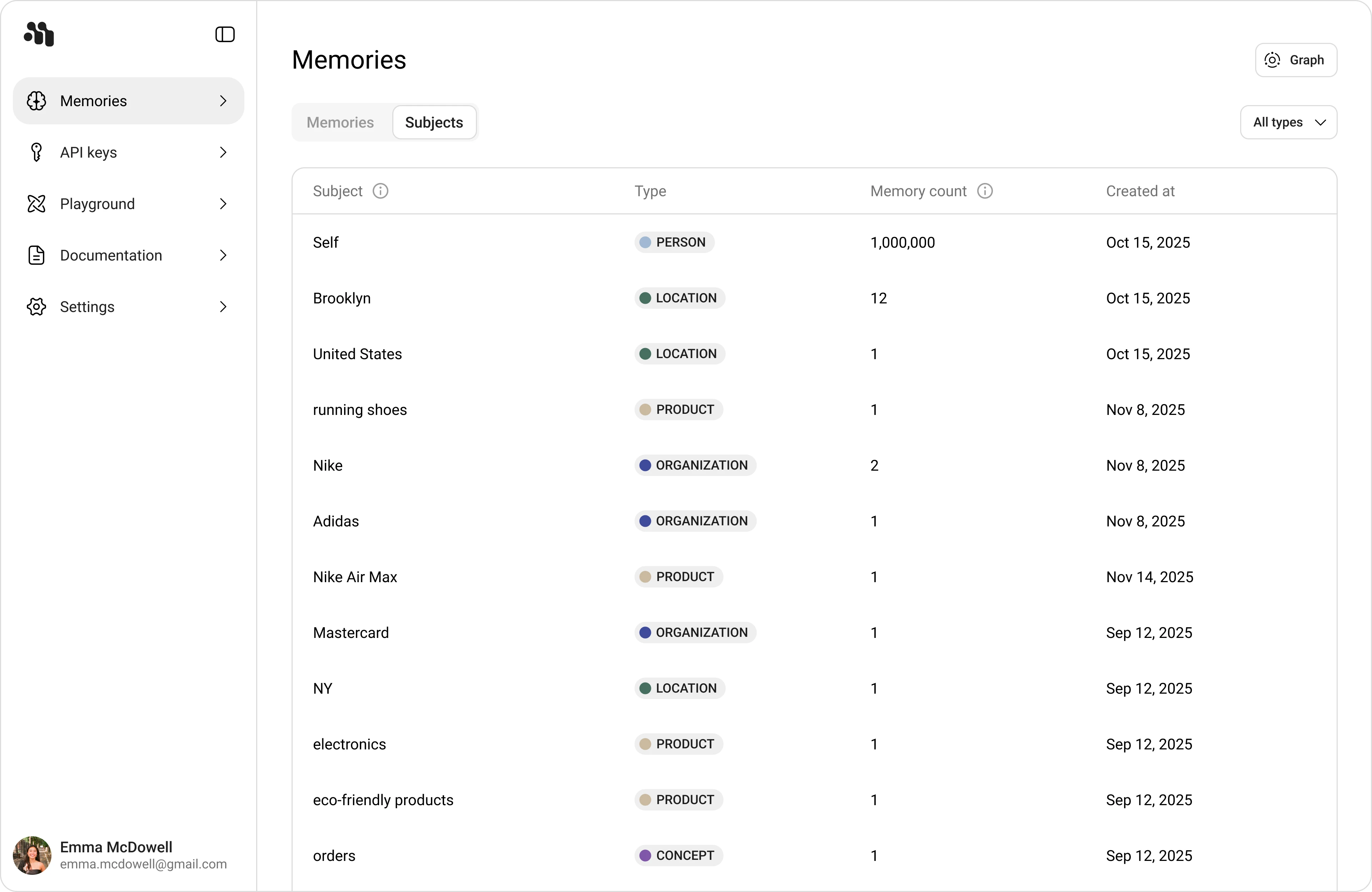 Use Memories in app.memorilabs.ai to inspect all memories created by your configured applications and agents.